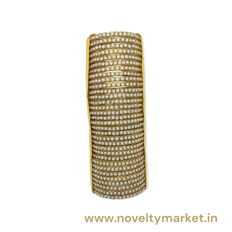 Acrylic/Plastic Seep 4 Pc Kangan, White-Golden Color, Mix Size Pack, Rs 30/- for 4 Pcs, Box of 32 Pieces