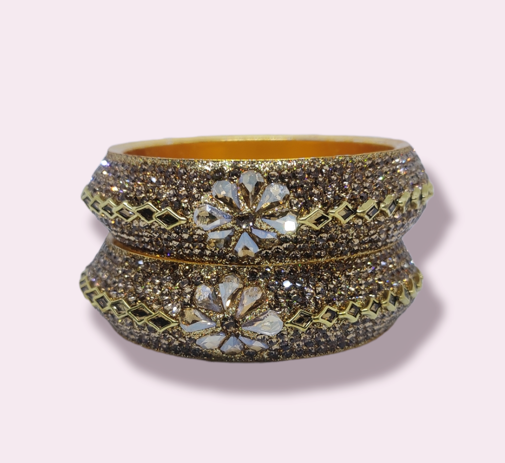 Designer Boss Metal Kangan, Golden Base, Stone Stud, Mix Size, Rs 125 for 1 Pair, Box of 4 Pairs for