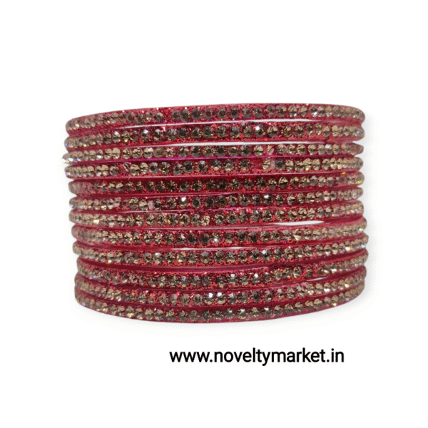 Designer Fancy Full Stone Glass Bangles, 6 Dozen Packing, Red Color, Mix Size (28-26-24-22) Packing, Rs 34/- Per Dozen
