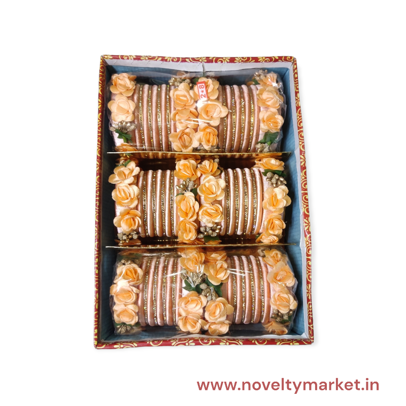 Designer Floral Concept, Thread Work, Acrylic Chuda, Peech Color, Mix Size (28-26-24), Rs 250/- Each Set, Box of 3 Sets