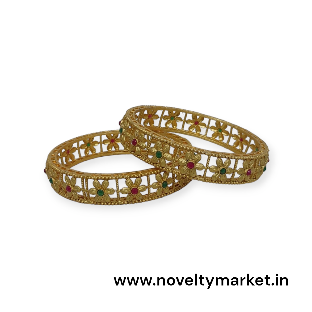 Designer Stone and Beads Stud Mazak Metal 2 Pcs Kangan, Gold Color, Mix Size (28-26-24), Rs 117/- Per Pair, Pack of 4 Pair
