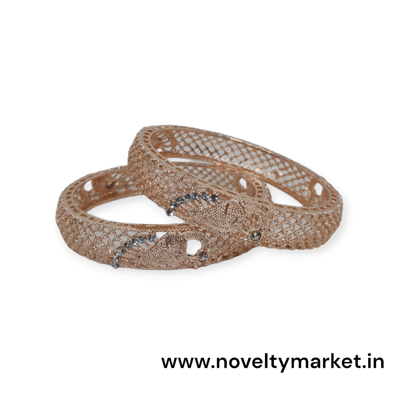 Designer Stone Stud Mazak Metal 2 Pcs Kangan, Rose Gold Color, Mix Size (28-26-24), Rs 86/- Per Pair, Pack of 4 Pair